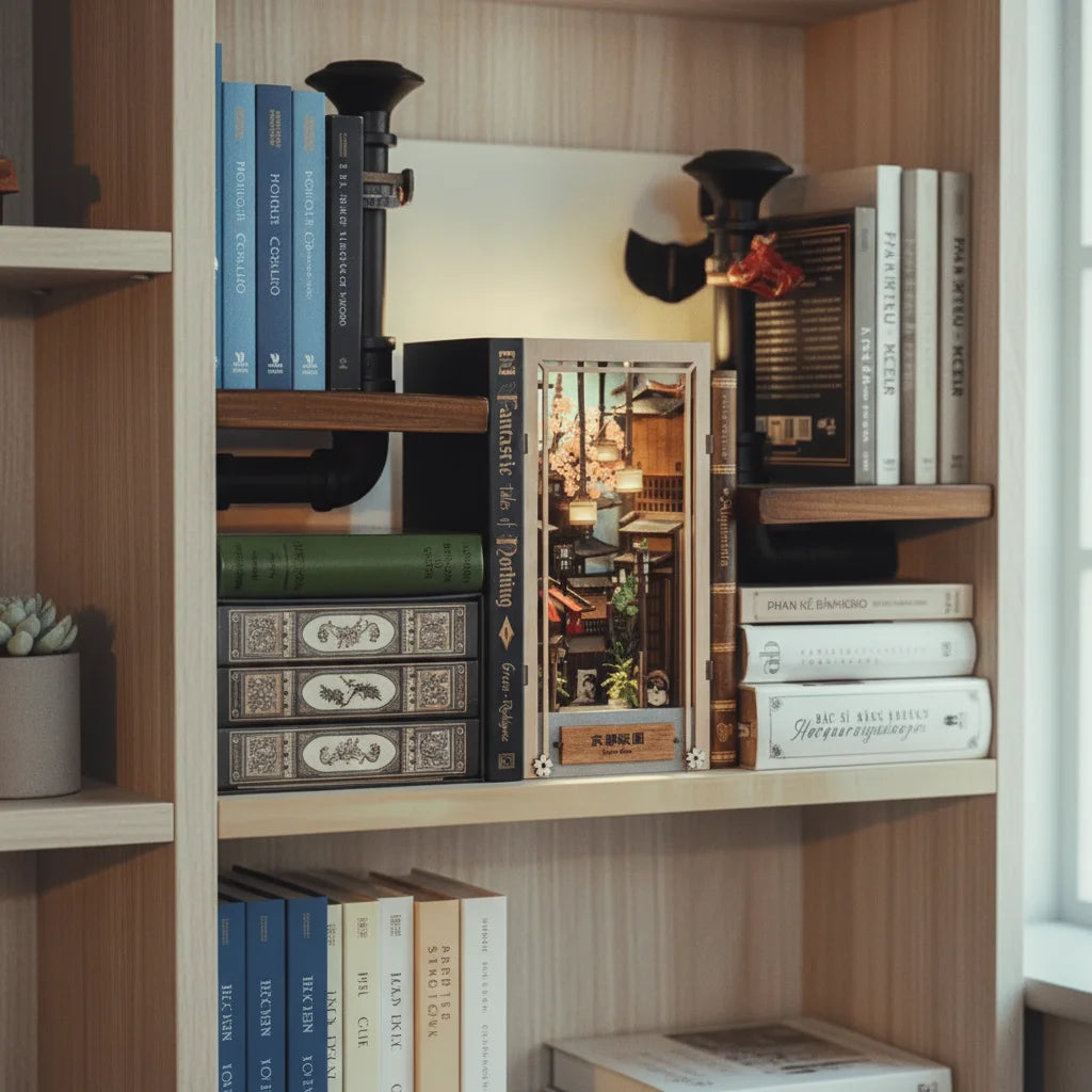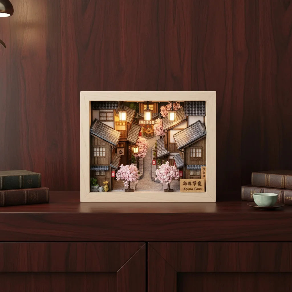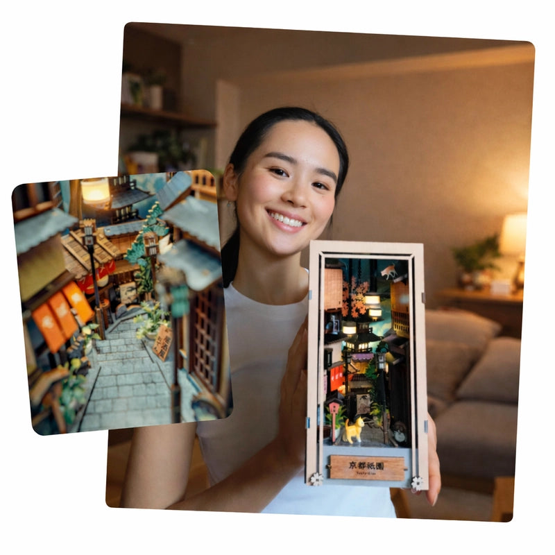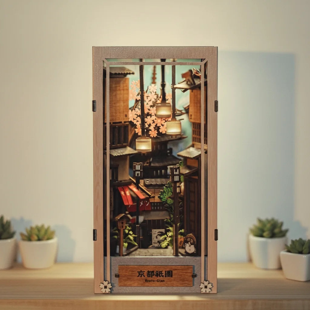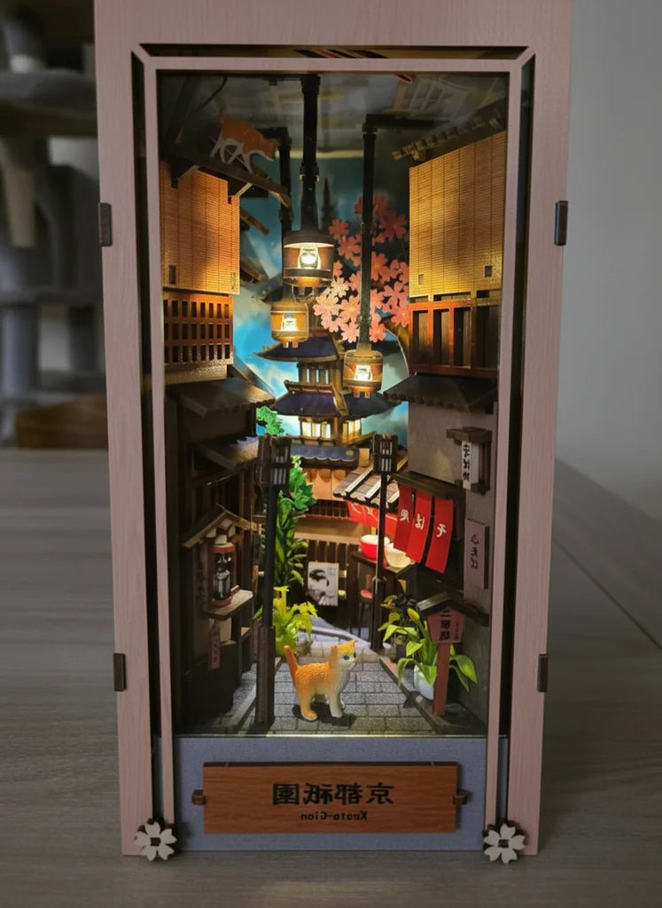 ​Plongez dans l’assemblage de notre kit DIY Book Nook Kyoto Gion, une création née d’un souvenir marquant : une promenade à l’aube dans les ruelles silencieuses du quartier historique de Gion, à Kyoto. Avant même que le soleil ne se lève, alors que la ville semblait encore endormie, nous avons vécu un instant suspendu, rare et profondément apaisant. C’est cette atmosphère unique que ce modèle cherche à recréer.